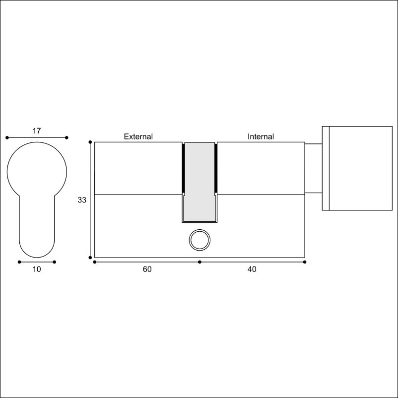A Euro Profile Key & Thumbturn Lock Cylinder for doors requiring key operation externally and thumbturn operation internally. Suitable for lock types with corresponding profile cylinder cut-out. Maximum Security 11 pin tumbler mechanism to TS 007:2014 3 Star rating with Anti-drill, Anti-Snap, Anti-Twist, Anti-Plug Pull, Anti-Pick & Anti-Bump features built-in. Certified to BS EN1303:2005 Durability Grade 6 (100,000 cycles), Key Security Grade 6 (additional keys can only be obtained from the manufacturer or authorised distributors). "Secured by Design" & "Sold Secure Diamond" approved product.