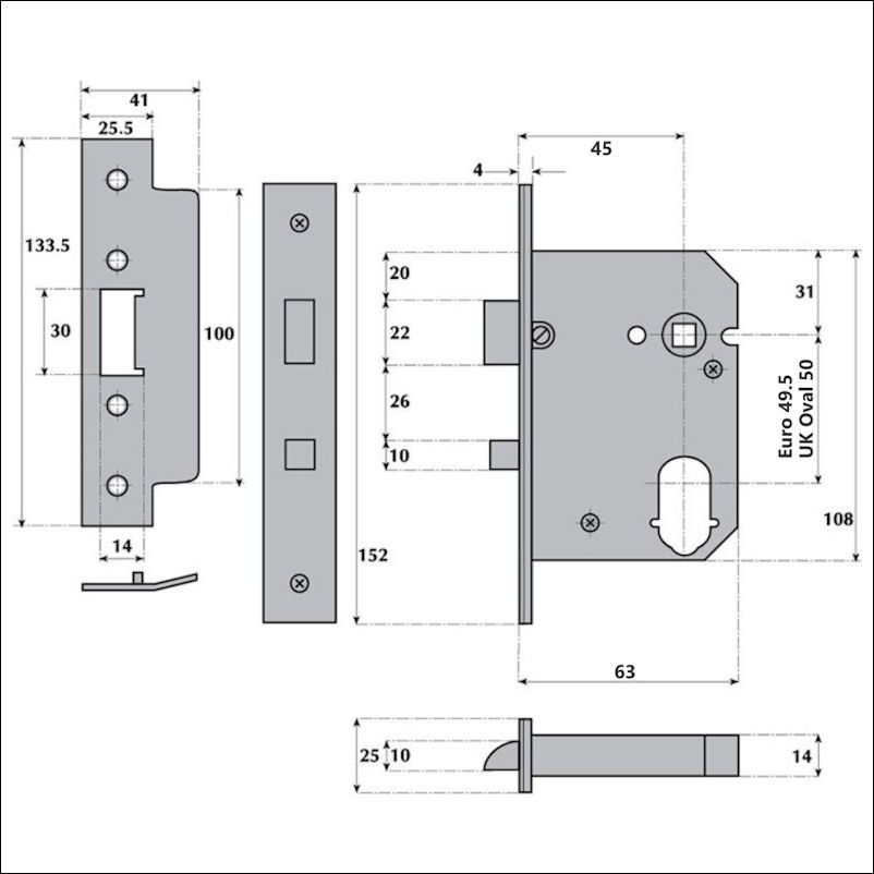 Made In Britain Suitable for FD30 Fire Doors Medium Security