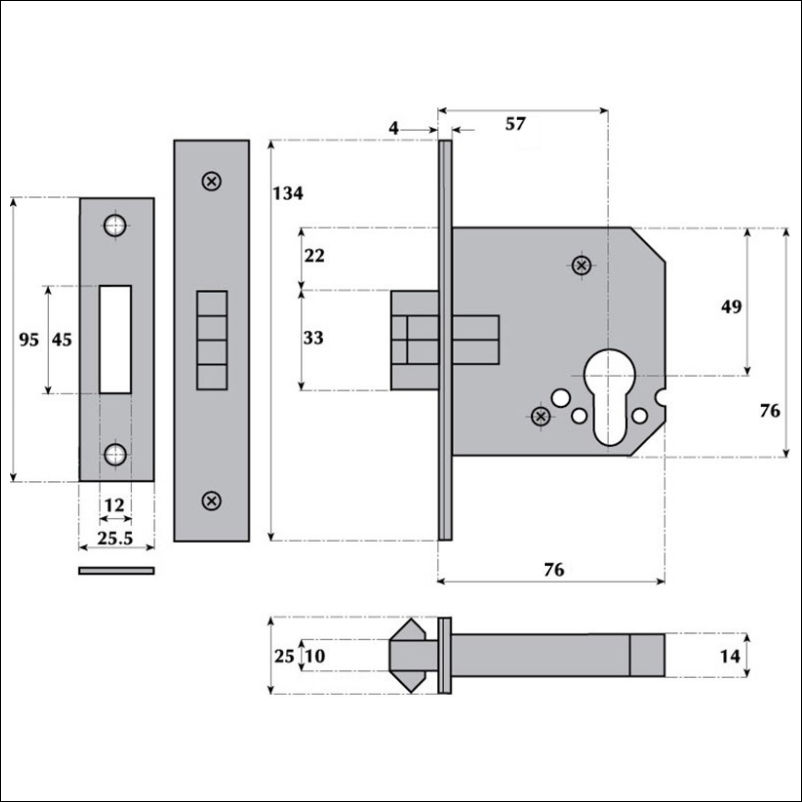Important: This lock requires the addition of a Euro Profile Lock Cylinder to function correctly. Suitable products can be found in the [LOCK CYLINDERS] store section.