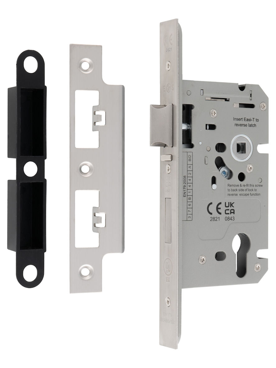 The lock features an anti-thrust bolt to prevent manipulation of the latch bolt by credit card etc. Both the the latchbolt and split-follower function are easily reversible on site to suit inward or outward opening, left or right hand hung doors.