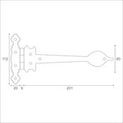 A decorative pattern cast malleable iron Tee Hinge suitable for light weight doors up to 27" (690mm) wide and an ideal choice for narrow ledged and braced soft wood larder or pantry doors etc. Forming part of our "Black Ironmongery" collection this authentic T hinge is manufactured in Britain by Kirkpatrick Ltd using time honoured techniques that have remained unchanged since the mid 1800s and should not be confused with the poor quality imported copies from other suppliers.