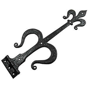 A decorative cast malleable iron Tee Hinge suitable for heavier doors up to 36" (926mm) wide and an ideal choice for solid oak ledged and braced room doors and entrance doors etc. Forming part of our "Black Ironmongery" collection this authentic T hinge is manufactured in Britain by Kirkpatrick Ltd using time honoured techniques that have remained unchanged since the mid 1800s and should not be confused with the poor quality imported copies from other suppliers.