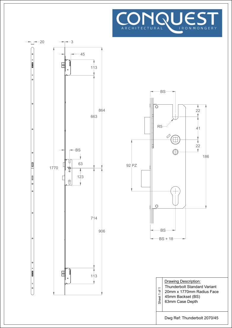 The Thunderbolt Multipoint Lock is an ideal solution for entrance doors and other external doors in domestic settings requiring a high security yet cost effective and versatile locking system. The chamfered twin deadbolts are designed to allow a high degree of fitting tolerence for door installation. In addition, the deadbolt shape provides low operating forces and helps doors achieve a higher level of weather performance. This Standard variant has a radiused end faceplate and is suitable for door heights up to 2400mm.